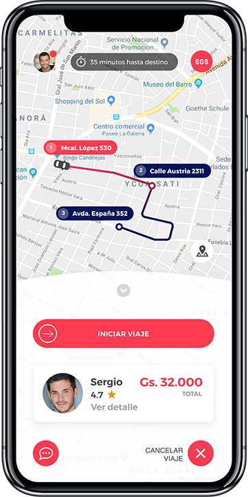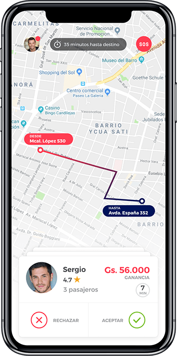 Antes de aceptar un viaje, ves toda la información necesaria incluyendo ganancias, el trayecto entero y calificación del pasajero